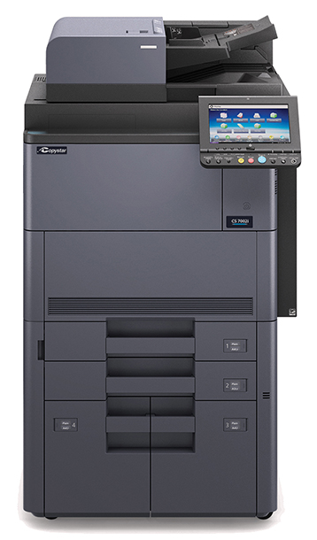 The Copystar CS 7002i series powers large volume users. Sharp black and white output combines with advanced finishing and speed. A document imaging portal that drives not only copy, print, and scan, it also simplifies your most frequent tasks such as knowledge sharing, archiving and more with the addition of powerful yet scalable KYOCERA Business Applications. KYOCERA Document Solutions is a global leader in the digital imaging industry, with an award-winning line of document solutions that consistently set the standard for high quality, superior image quality, workflow-supportive applications, ease-of-use and durability. We get to the heart of your critical business challenges, with a personalized, single source approach that helps streamline your entire document workflow to reduce costs, increase workplace productivity and efficiency, and deliver exceptional results you can count on.