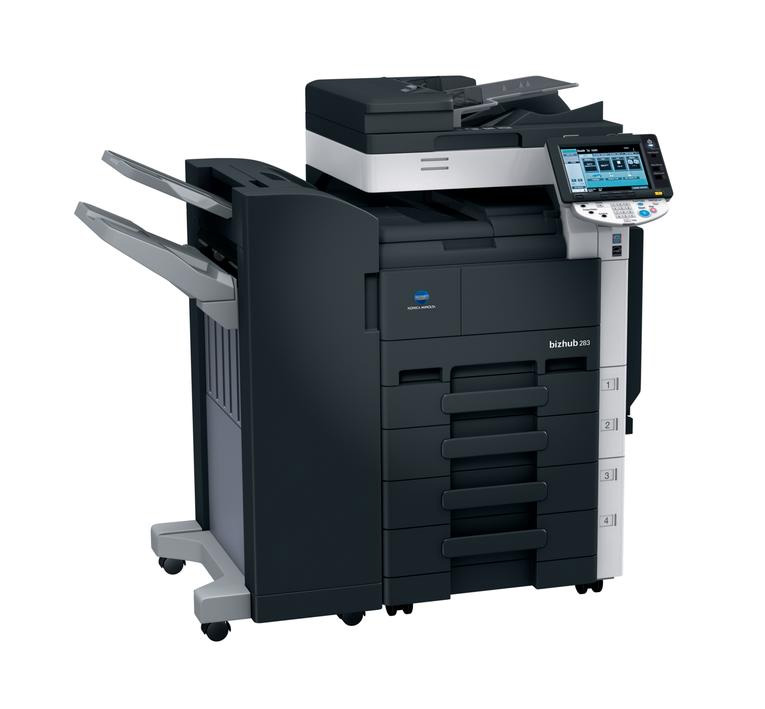 Fast, flexible information sharing. It's what the bizhub 283 laser multifunction printer was designed for. Enjoy high-volume productivity with B&W print/copy output up to 28 ppm, color and B&W scanning at up to 70 opm. The bizhub moves information fast with multiple "scan and send" and high-speed fax options. Center-office styling complemented by an 8.5" color touch-screen makes this laser multifunction printer as attractive as it is easy-to-use. Add an i-Option™ kit and you'll be putting an unparalleled amount of power right in the hub of your office.