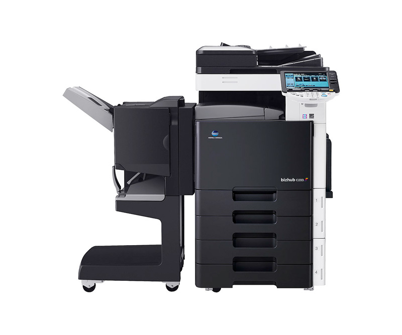 • The bizhub C203 multifunction printer offers new security enhancements, DPWS for improved connectivity and installation, Super G3 Fax option, i-Option Kits with web browser convenience, Image Panel display and Enhanced PDF Encryption.