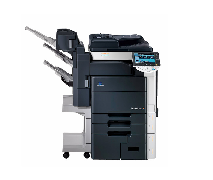 Having individual copiers printers scanners and faxes can clutter your office. Konica Minolta developed the bizhub C451 to provide all the features that those individual machines provide in one multifunction printer. Innovative design with 360° access, large color touch-screen, dark gray cabinet and small footprint for placement anywhere in your office.
